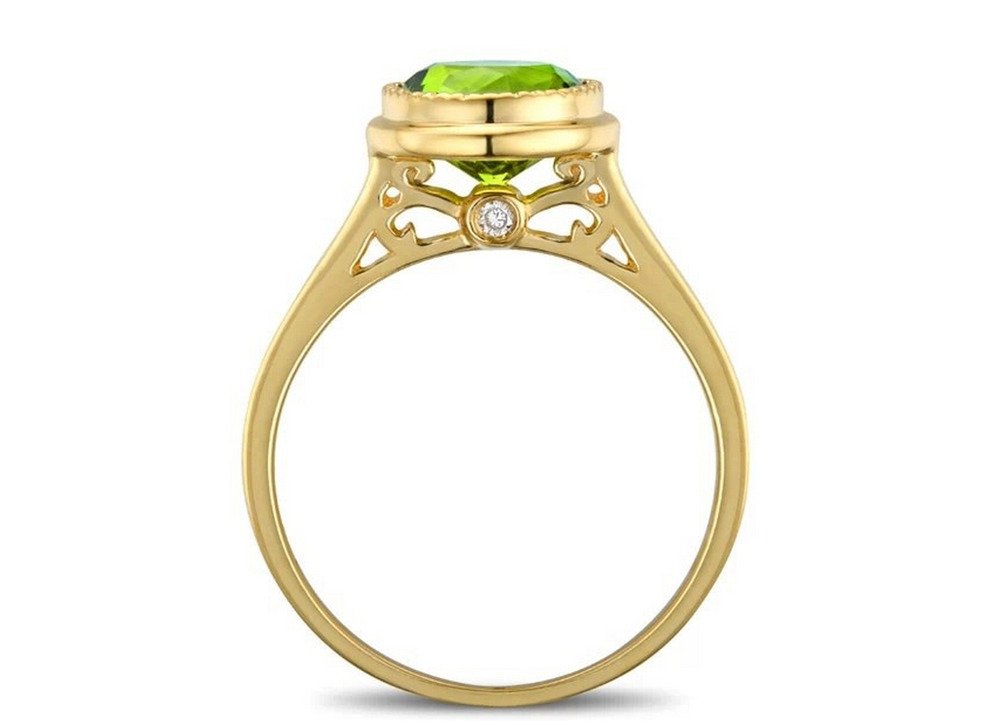 1.70 carat Natural Peridot. 0.02 carat Diamond. 18K Gold Ring. Luxury packaging included. We can make a free customized 3D drawing based on this design, your ring size and your wishes. Please contact us below. Also if you require advice from our experts.