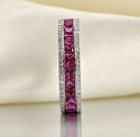 0.95 carat (2.5mm width) Natural Ruby. 0.58 carat Diamond. 18K Gold Ring. Luxury packaging included. We can make a free customized 3D drawing based on this design, your ring size and your wishes. Please contact us below. Also if you require advice from our experts.